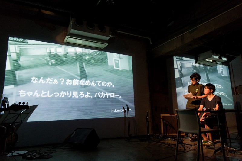 山形育弘がやけに親しげに、観客に告げるこの公演のテーマは「心霊現象の映像にコメントをつける仕事をしている男が、スタジオで陥ってしまったある無間地獄」。わずか二分間の映像にはなるほど、初見ではぎょっとするような心霊が映っているのだが、それに対して、まず山形育弘がぶつぶつとコメントを推敲している。やがて、そのぶつぶつが、ちょっとしたナレーションとして練り上げられると、吉田翔がそのナレーションをとがった声で言い立てる。さらには、この吉田のコメントと同じ字幕が画面に現れ、さらにそこに元の心霊映像がつく。ベースの會田とドラムの池田と山形、瀬木俊の無言のコントがつき、さらには瀬木のギターが加わるころには、吉田のコメントは(それ自体は全くトーンが変わらないにもかかわらず)リリックのように扱われて、バンドの三人があたかもそのリリックの口調をなぞるように演奏を始め出す。